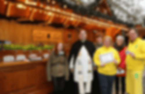 Segnung neuer Stände - Im Anschluss an den Weihnachtsmarkt-Gottesdienst segnete Schausteller-Seelsorger Pfarrer Sascha Ellinghaus (kath.) drei neue Geschäfte: Kleppingstraße, Stand 428, Gebrannte Mandeln mit Manuela Mirke-Müller und Matthias Mirke (in Gelb), Mutter Angelika Müller-Stahlschmidt (2.v.r.) und den Kindern Monique (links) und Maurice (3.v.l.). Reinoldi-Kirchplatz, Stand 314, Hirtenbrot mit Alicia Arens (links), Partner Marven Radecke (im roten Hoody) sowie Vater Patrick Arens (2.v.l.) und Großvater Hans-Peter Arens (rechts). Reinoldi-Kirchplatz, Stand 347, Maronen-Hexe, mit Elsa Schäfer, Carlo Mönnig (2.v.l.) und Hans-Peter Arens (links).